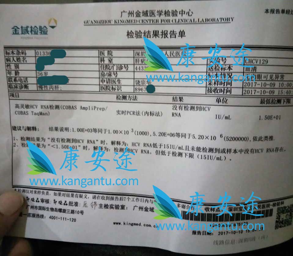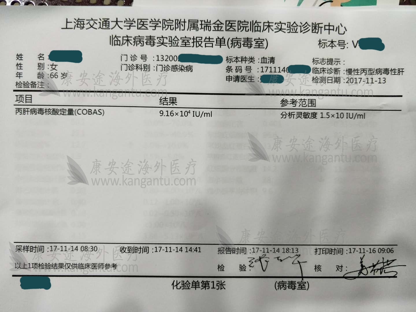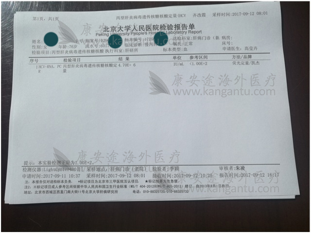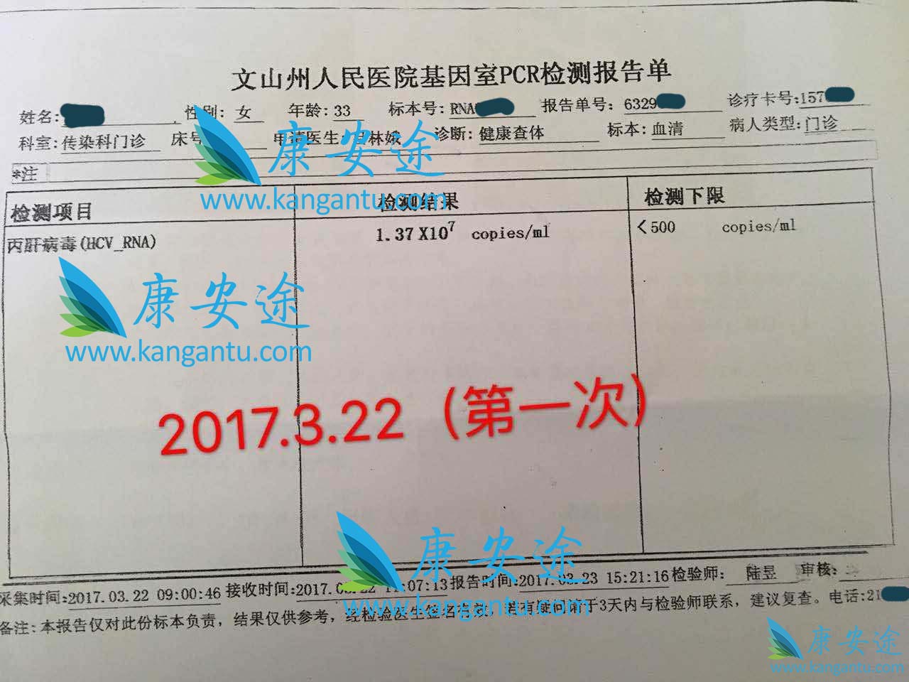 丙肝W女士 年龄:71 分型:2a 来自:吉林