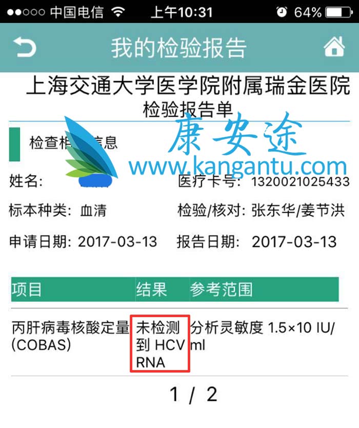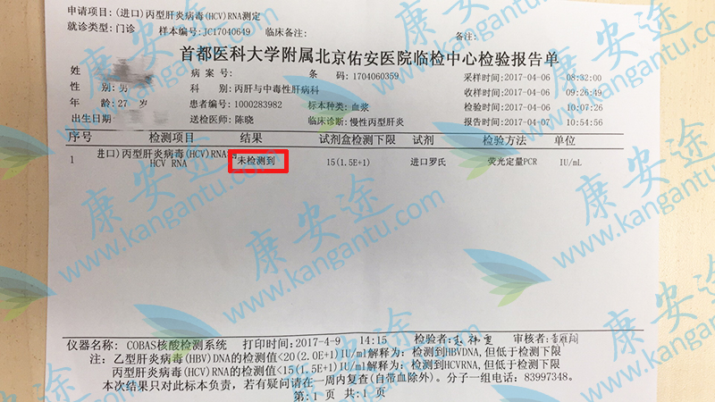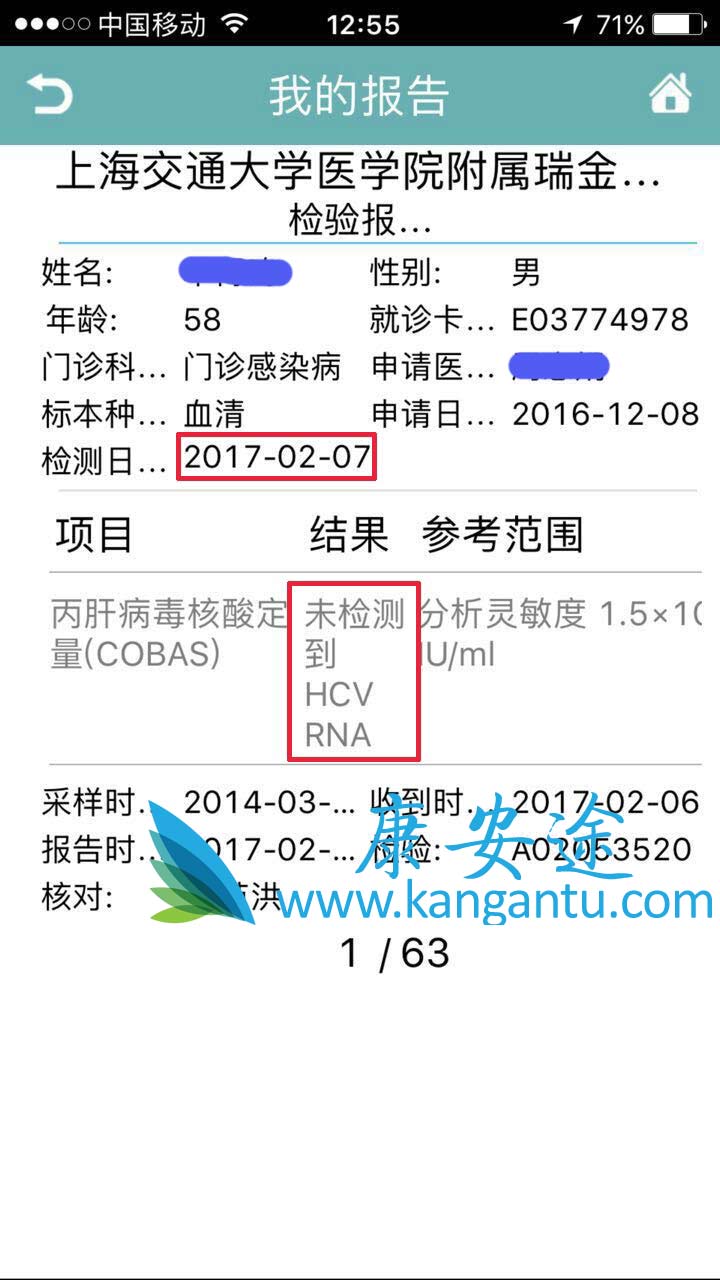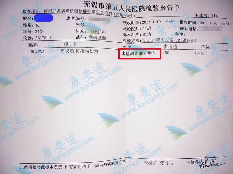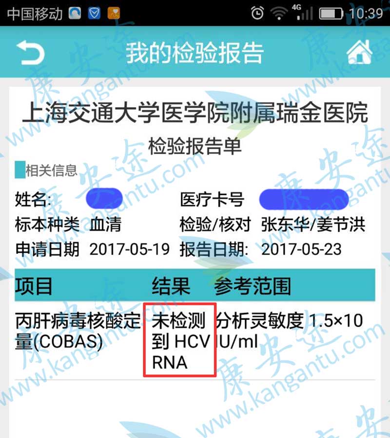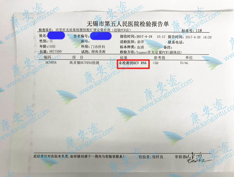 丙肝D先生 年龄:35 分型:6a 来自:无锡