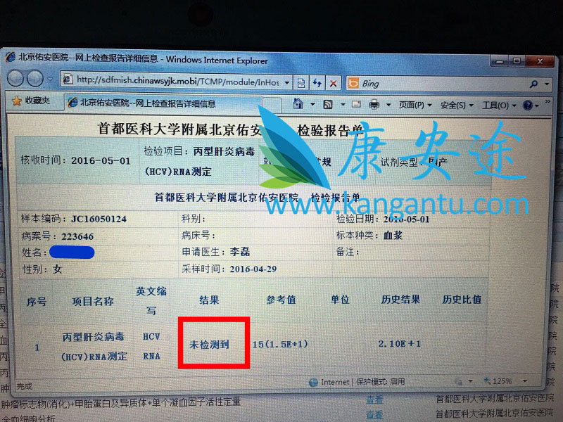 丙肝Y女士 年龄:52 分型:2a 来自:吉林