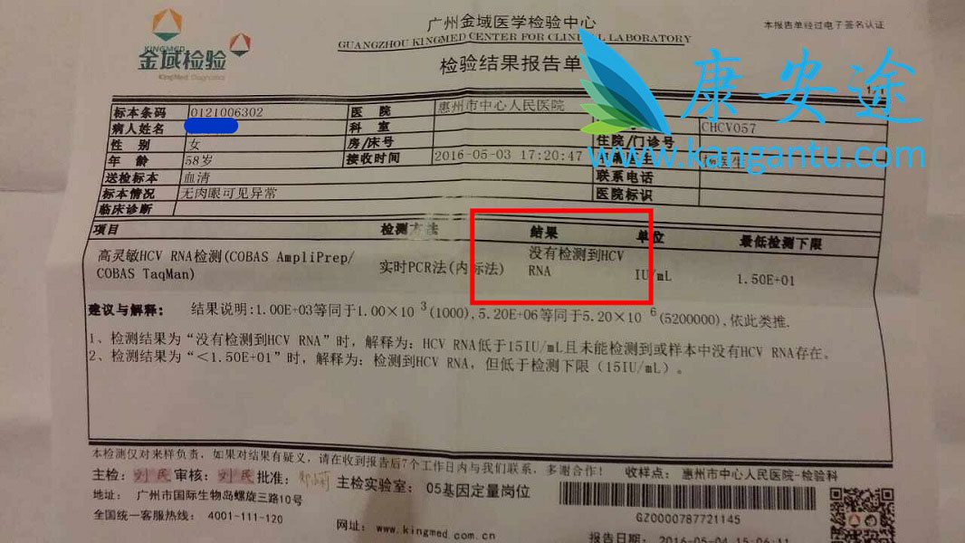 丙肝F女士 年龄:58 分型:1b 来自:广东